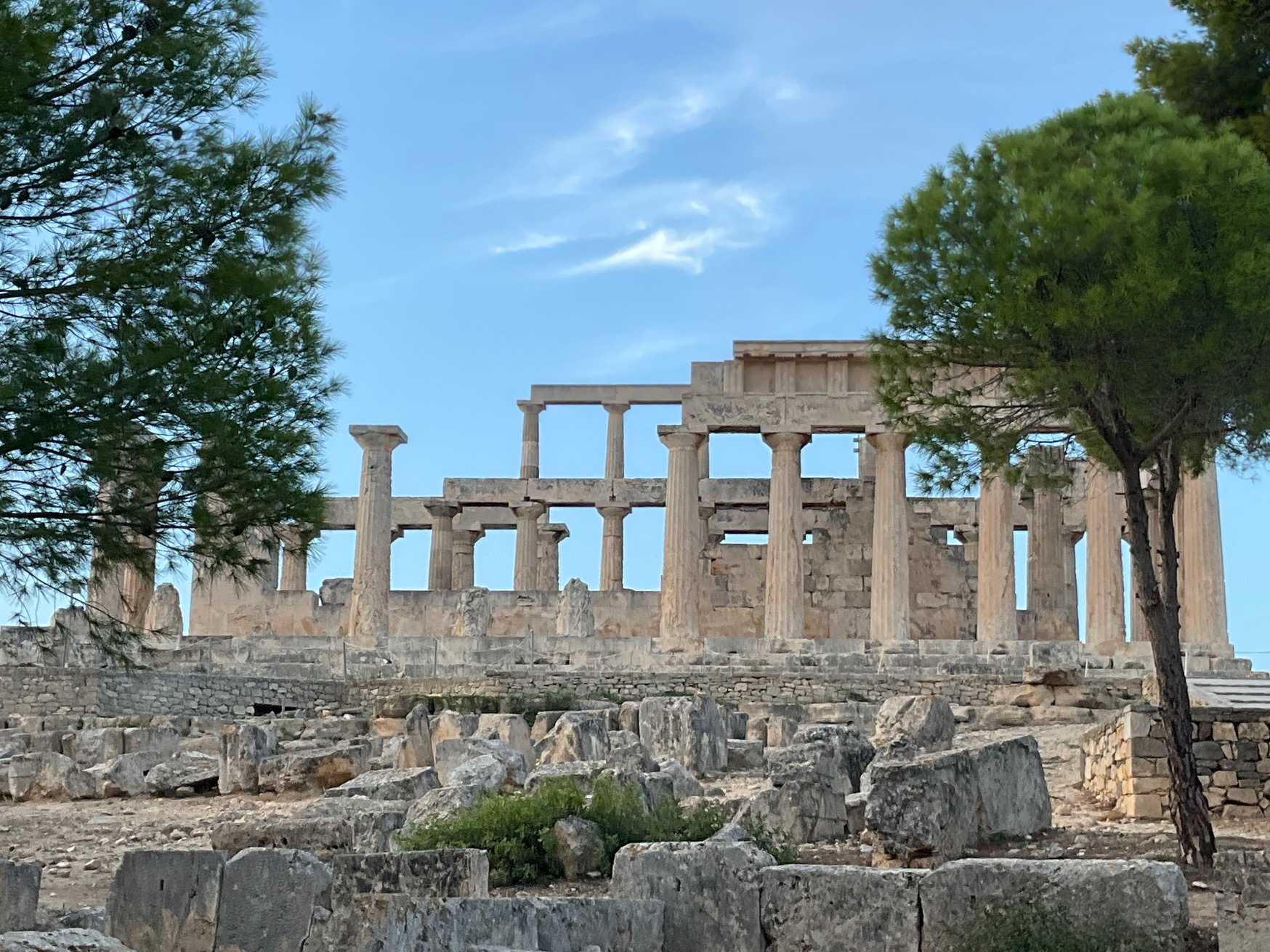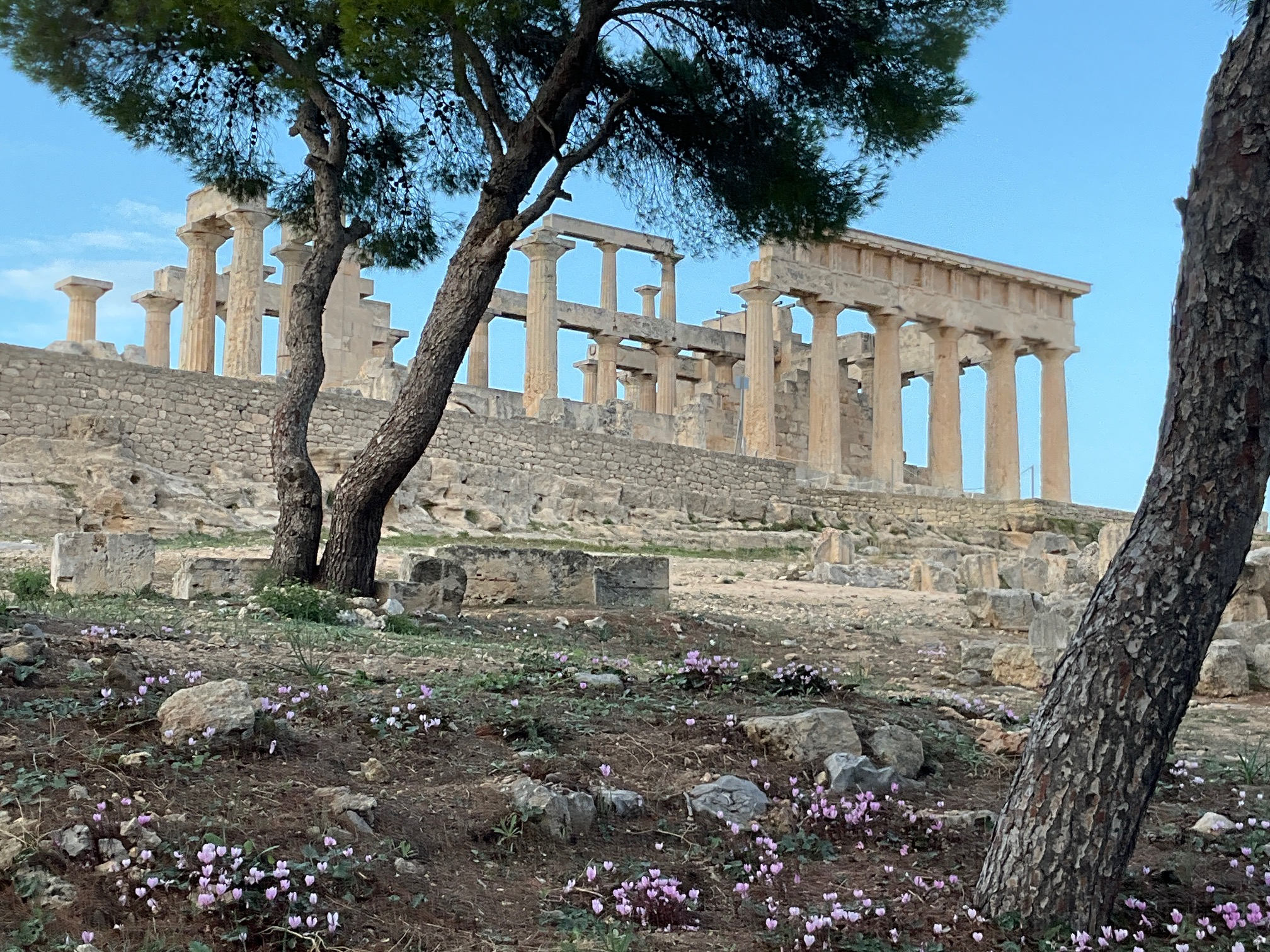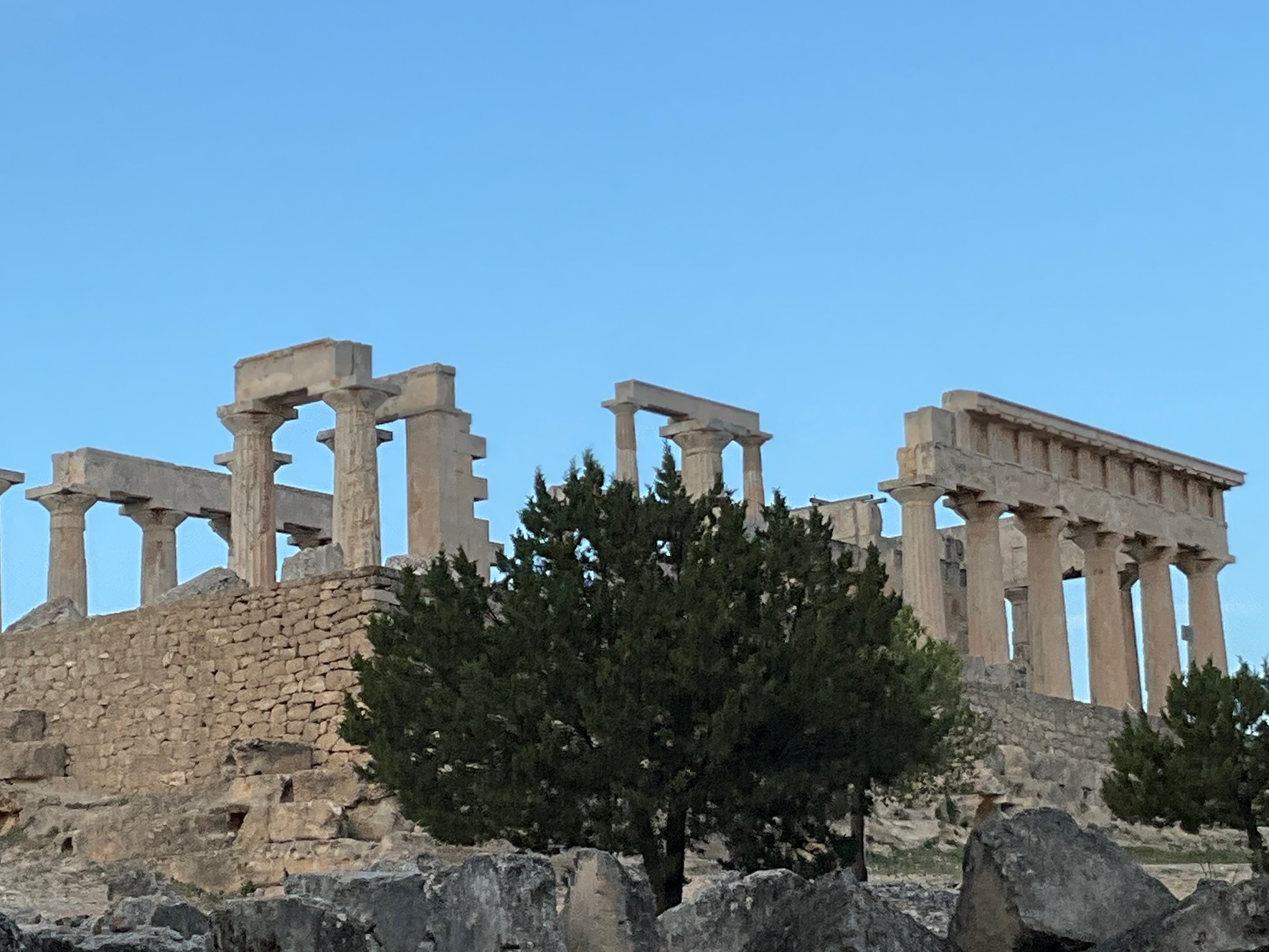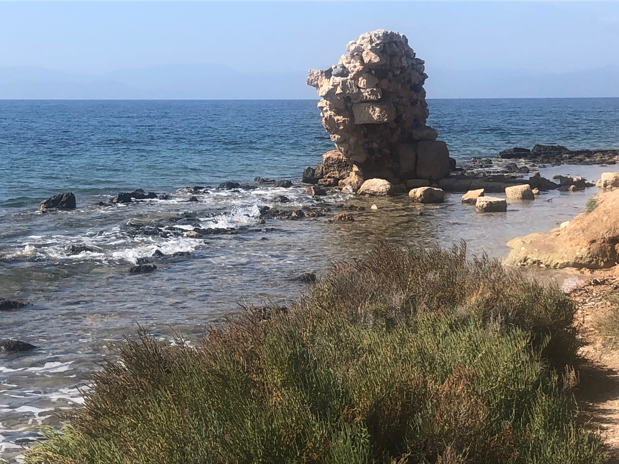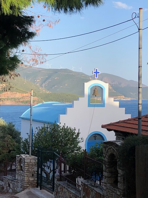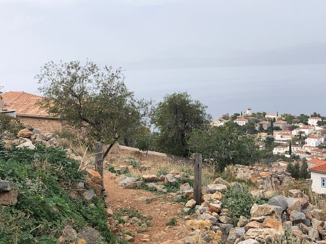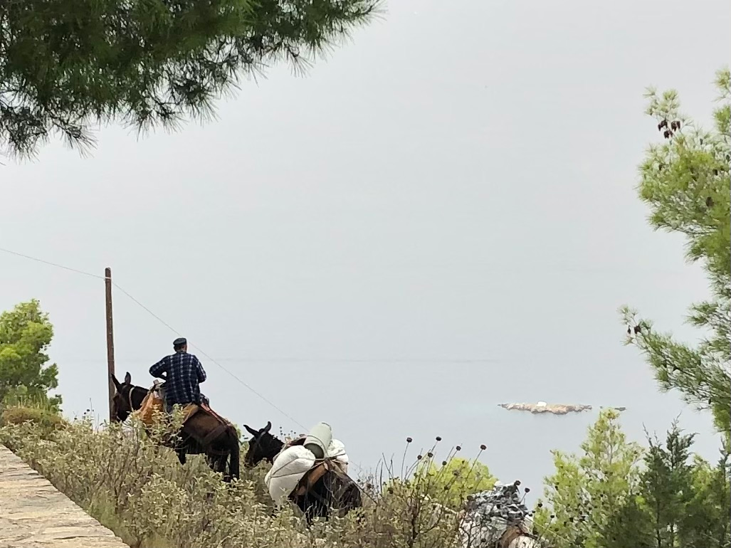 Vue sur la montagne, quelques bergeries d’altitudes, espacées, lumineuses et paisibles … oui une très belle ile qui sait rester intacte. Un petit résumé de la Grèce. Je signale au passage que depuis que je m’y promène je n’ai pas assisté à une altercation, ni incivilité en ville ou dans la circulation (les grecs roulent tous sans casque), ni mouvement d’humeur ou même d’impatience. Et ce n’est pas faute de caractère. Il me semble que ces gens éprouvent une sorte de respect pour l’autre qui n’exclue pas l’ironie ou la malice mais qui sait rester dans les limites du vivre ensemble. La vie en Grèce peut être sans doute grave, mais avec élégance.
