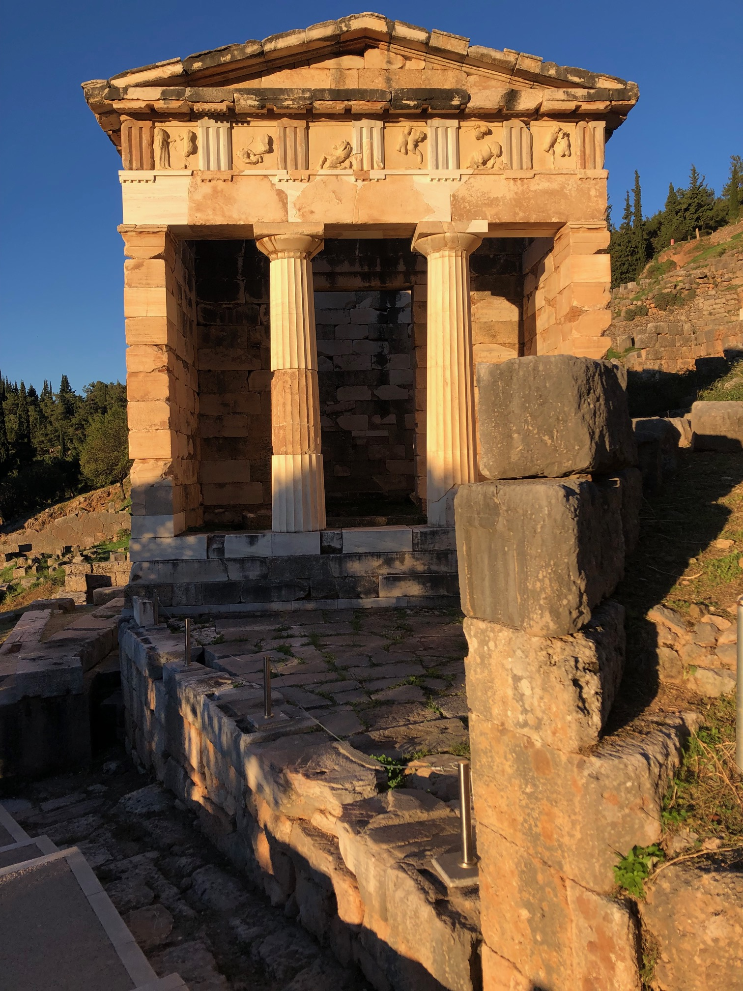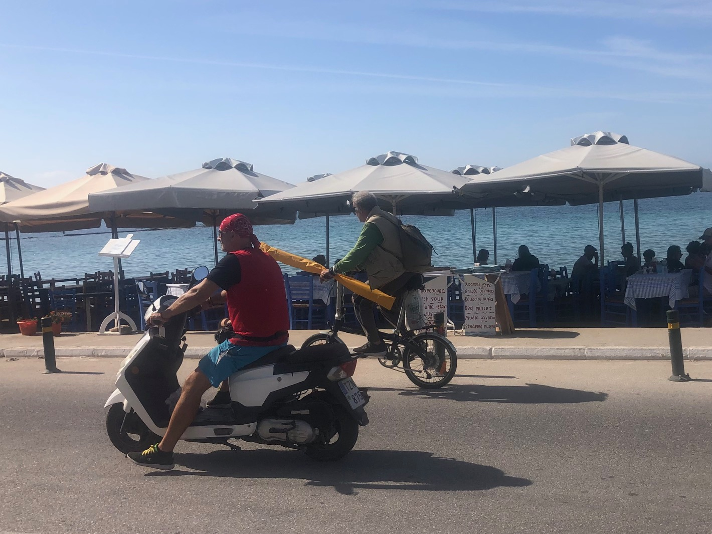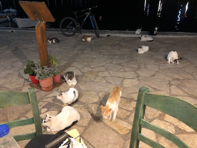 Nous sommes arrivés le jour du “ochi;” (non!) le 25 octobre. Le non à Mussolini en 1940; jour férié. Un peu étonné de voir les restaurants pleins des 18h-18h30 alors qu’à part quelques touristes on commence à servir en terrasse vers 20h-20h30, en bon franchouillard j’imaginais que les grecs dînaient plus tôt ce jour-là pour quelque obscure raison, spectacle, feu d’artifice… Pas du tout! Les grecs ne dînent pas; ils déjeunent!