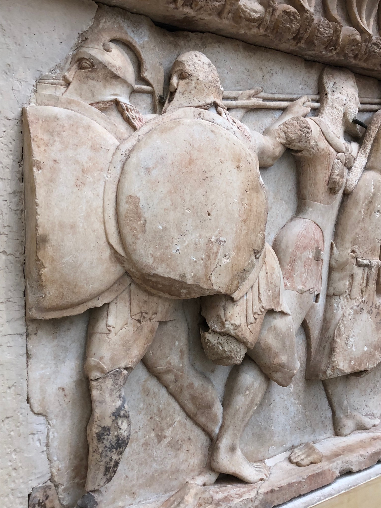 En fait le site de Mycènes ressemble à son histoire dominatrice et conquérante. La ville, en hauteur, voit loin, jusqu’à la mer, sur presque 360 degrés, et elle est protégé par de larges et hauts murs de gros blocs ajustés. La porte des lions donne une