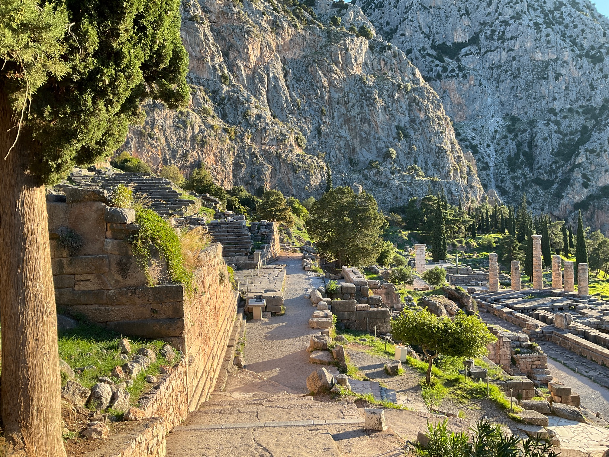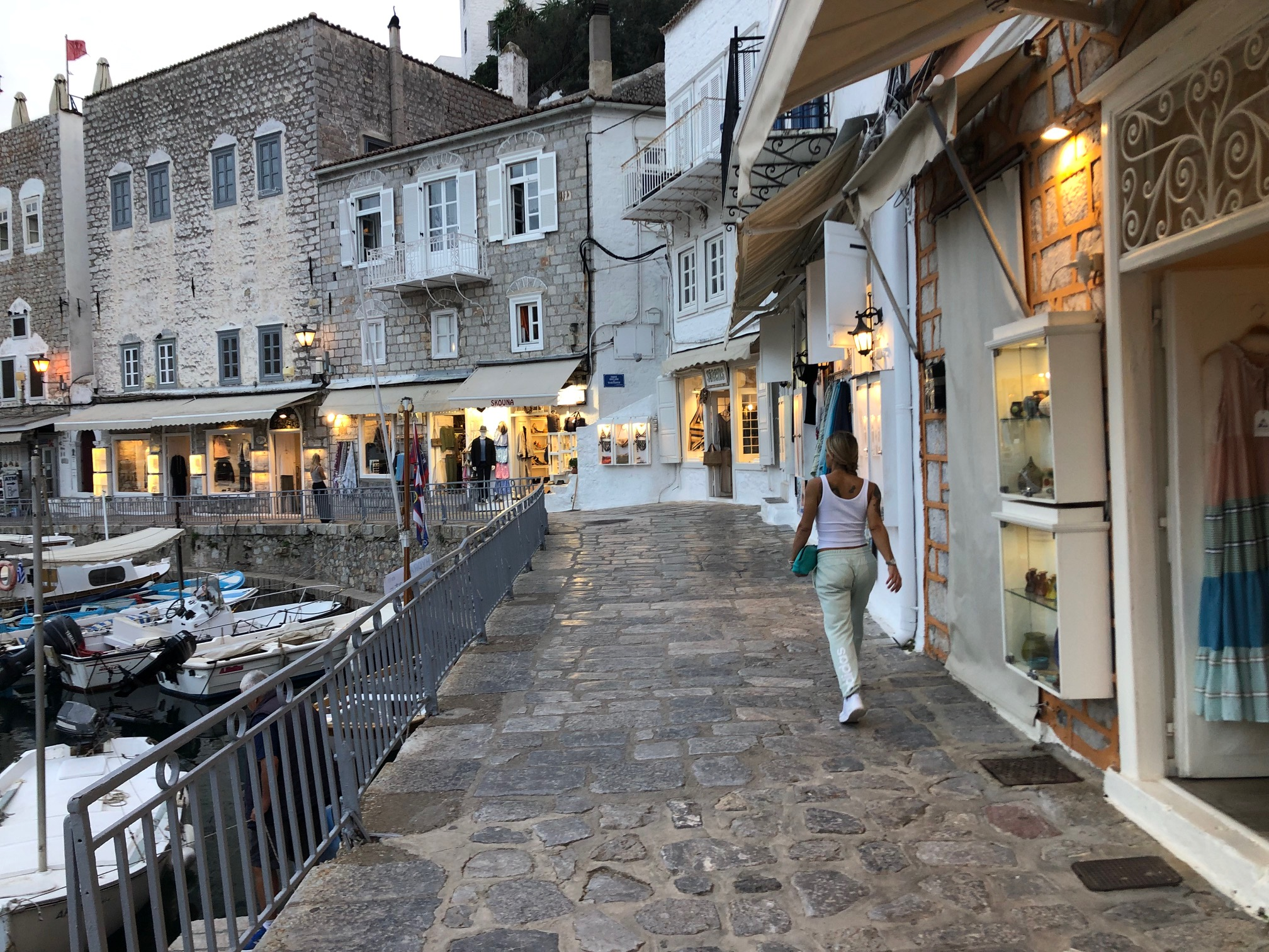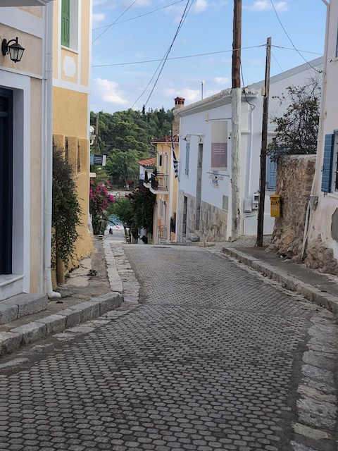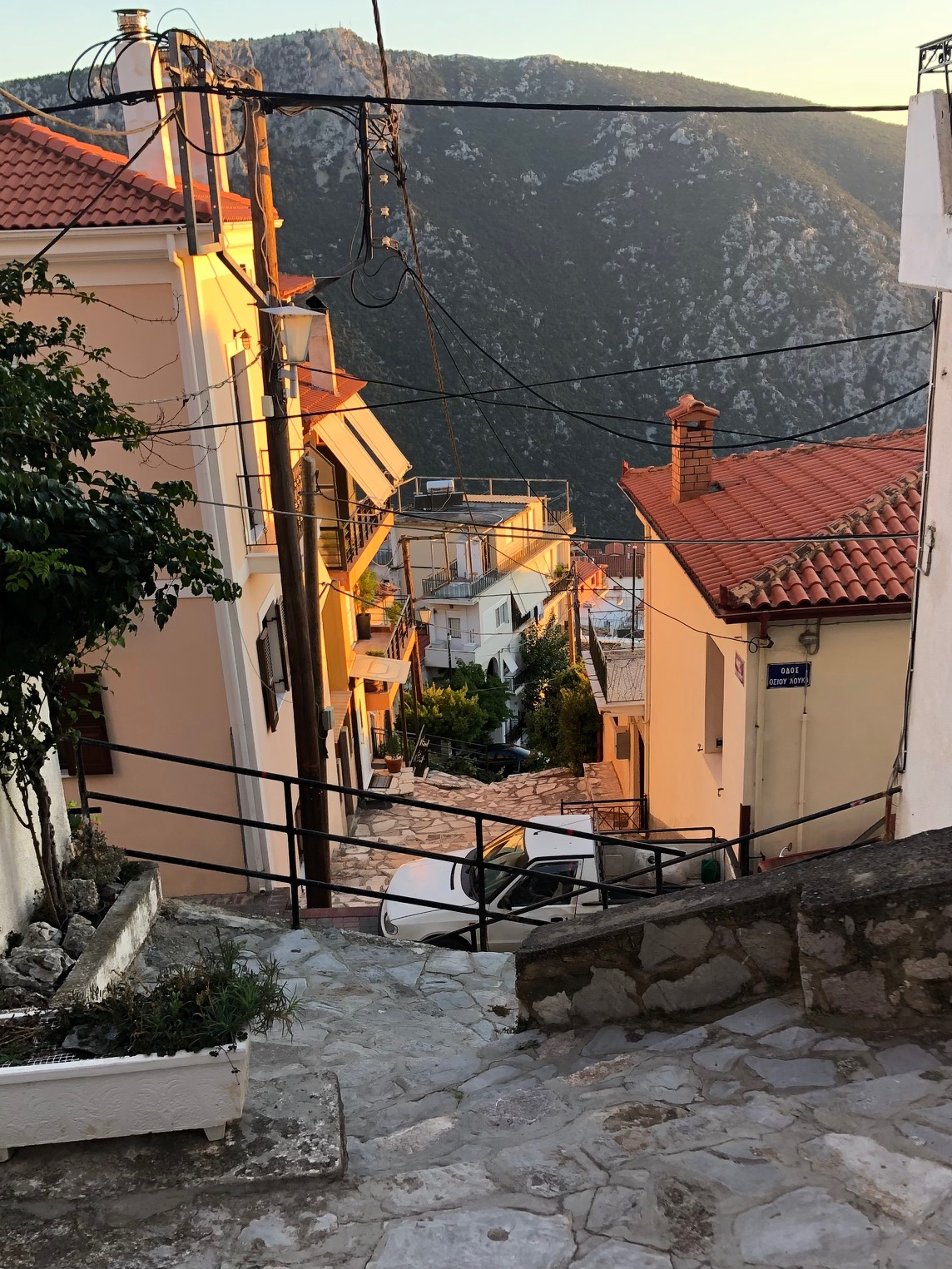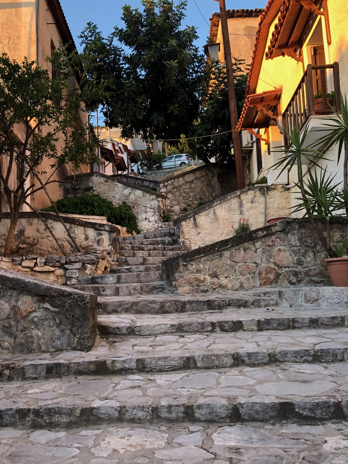 Très joli petit port de carte postale en bas avec de beaux pavés sous les terrasses des cafés, des boutiques sympas … Pas de voitures, pas de routes; seulement des chemins, des chevaux, des mulets, de belles maisons, beaucoup d’églises et d’escaliers.