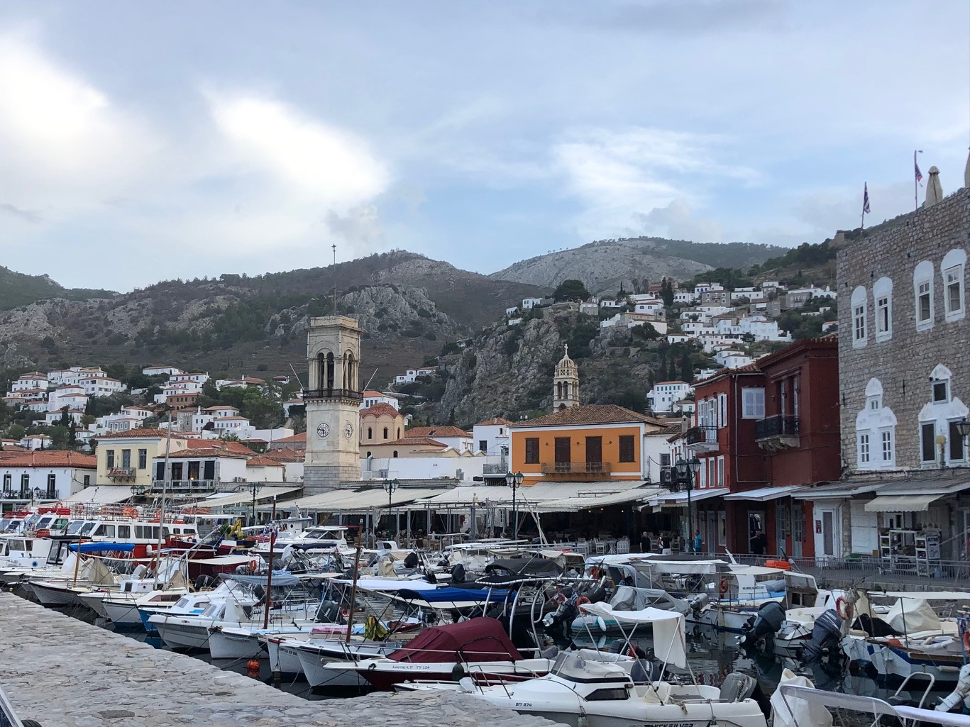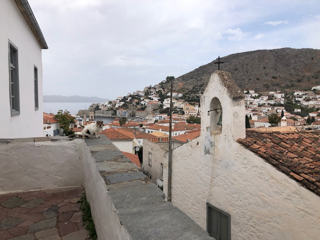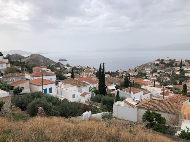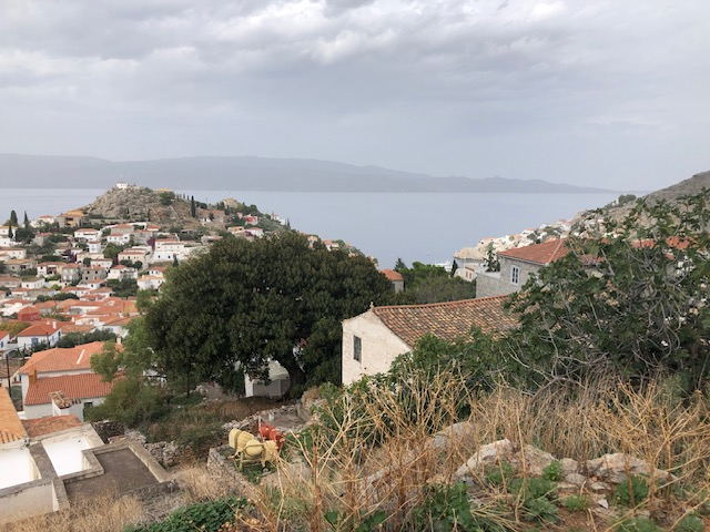 HYDRA: l’incontournable. Je n’avais pas envie d’y aller. Temps gris maussade, un peu le “grec” qu’on a chez nous. Des touristes façon Noirmoutier… qu’est-ce qu’il a contre Noirmoutier?.. Rien. Sauf qu’à force d’y construire vos baraques habitées 3 semaines par an vous avez fini par la transformer en pâté de maison… ça c’est dit! … Alors disons St Tropez… qu’est-ce qu’il a contre …? Rien. Mais St Tropez a disparu … Et Hydra? Eh bien Hydra non! Il y en a encore pour tous les goûts: