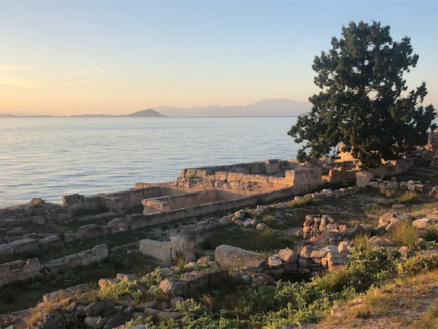 Bref je loue un vélo et je retrouve Egine, la ville, toujours bien séduisante, quand même un peu petite, avec ce temps plus gris, des magasins fermés… mais le musée ouvert et le site archéo aussi.