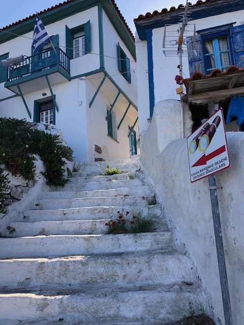 Depuis le départ certaines îles m’ont plu, d’autres moins. Celle-ci m’a déplu. Certes le lieu est beau, le village construit en hauteur, ruelles, escaliers, maisons plutôt jolies…